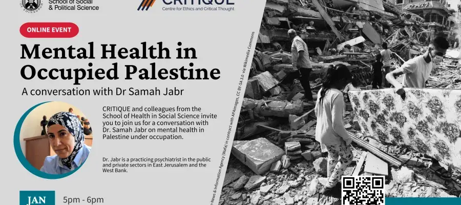 Previous events in the School of Health in Social Science from 2024 Past events Search Event date Date from Date to Jan 11 2024 17.00 - 18.00 Mental Health in Occupied Palestine Join us for a virtual chat with Dr. Samah Jabr, as we delve into the crucial topic of mental health in occupied Palestine, sharing insights. 2024 Further information Jan 24 2024 18.00 - 21.00 Let's Gather: Ceilidh Let’s Gather to celebrate Burns Night! 2024 Further information Feb 01 2024 16.30 - 17.45 Making Poems from People’s Stories: Poetic Portraiture as Representation, Inquiry, and Community Engagement First Thursday seminar, presented by Professor Sandra L. Faulkner on Thursday 1st February: 'Making Poems from People’s Stories: Poetic Portraiture as Representation, Inquiry, and Community Engagement' 2024 Further information Feb 02 2024 14.00 - 15.00 Let's Gather: Bollywood Yoga Let’s Gather for some Bollywood style yoga! 2024 Further information Feb 09 2024 14.00 - 15.30 Let's Gather: Art Collective Let’s Gather for the second in our series of Art Collectives! 2024 Further information Feb 14 2024 13.00 - 16.00 Let's Gather: National Museum Trip Let's Gather to visit the National Museum of Scotland! 2024 Further information Feb 22 2024 14.30 - 17.30 Let's Gather: Karaoke Let’s Gather for some karaoke! 2024 Further information Mar 07 2024 16.30 - 17.45 Autoethnography: A Conversation with Dr. Robin M. Boylorn First Thursday seminar, presented by Dr. Robin M. Boylorn on Thursday 7th March: 'Autoethnography: A Conversation with Dr. Robin M. Boylorn' 2024 Further information Mar 14 2024 13.00 - 15.00 Let's Gather: Escape Room Let's Gather for an escape room! 2024 Further information Mar 22 2024 14.00 - 16.00 Let's Gather: Camera Obscura Let's Gather to visit Camera Obscura! 2024 Further information 1 2 3