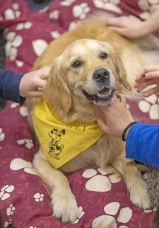 School of Health in Social Science staff and students co-design pioneering project to deliver benefits of time spent with dogs. Furry, four-legged friends are at the heart of a wellbeing programme that plans to draw on dogs’ natures to enhance student welfare at the University of Edinburgh.Paws on Campus – a first of its kind in the UK – could provide a novel style of support for students experiencing stress and anxiety. During the sessions, students spend an hour with a therapy dog, taking part in guided relaxation exercises which benefit the humans and animals. Paws on Campus trial session The programme was co-designed by students and staff from the University’s School of Health in Social Science and Royal (Dick) School of Veterinary Studies.Each session focuses on specific learning outcomes and therapeutic objectives that have been designed to help students reflect on their own challenges and recognise the connections between their wellbeing and an animal’s welfare needs. The sessions flow really well and it has been great learning the various grounding and awareness techniques that you can also do in your own time. I found it made mindfulness – something that I struggled with before - so much easier when there is a dog to focus on Izzy Adams Third year University student who took part in the trial sessions Wholesome collaborationPaws on Campus has been trialled in collaboration with Canine Concern Scotland’s Therapets Service, which provided the registered dogs and their handlers.The programme’s use of psychological principles differs to other pet therapies, being the first of its kind to combine student mental health and animal welfare through a series of planned sessions.The Paws on Campus programme builds on studies conducted at the University of Washington and University of British Columbia in the US.Creators of the programme, Professor Jo Williams and Laura Wauthier of Clinical and Health Psychology at the School of Health in Social Science, and Dr Andrew Gardiner from the Royal (Dick) School of Veterinary Studies, are hoping it can be used to deliver benefits to students.Following trial sessions towards the end of 2022, the team are looking into ways they can link the programme with the University’s student wellbeing services.Paws on Campus has been supported by the Principal’s Teaching Award Scheme for the first year to refine the sessions and put in place an evaluation framework to ensure the programme meets the needs of students.The University of Edinburgh offers a range of counselling and wellbeing services to its students, including to one-to-one counselling, a 24/7 Listening Service, wellbeing workshops, and guided self-help and online support packages. Four-legged friend at Paws on Campus Paws on Campus is a great opportunity to have fun, learn about the subtle cues that dogs use to communicate and provide students with a range of skills to support their wellbeing. We are hoping that the project will create a framework for university campus dog programmes that can be used nationally and internationally. Professor Jo Williams Co-creator of Paws on Campus Perhaps more than most, vet students understand the well-being benefits to be had from interacting with animals. They are also aware that such sessions should be fun and anxiety-free for the animals too, so an important part of the programme will be to assess the impact on the volunteer dogs as well as the participating humans. Dr Andrew Gardiner Co-creator of Paws on Campus Related linksPaws on Campus at the University of EdinburghStudent Counselling Images - Neil Hanna Photography Tags 2023 Publication date 16 May, 2023